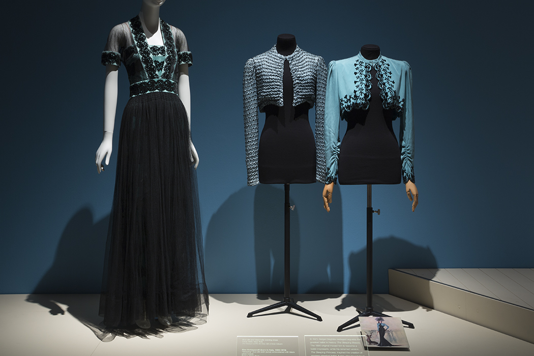 Arguably the greatest ballet in history is The Sleeping Beauty. Both full-length and one-act versions of this 1890 classic was performed throughout Europe during the interwar years. The vibrant blue costumes worn by the Bluebird and Princess Florine inspired fashion designer Elsa Schiaparelli to create “Sleeping” blue couture garments. She also named her Princess-inspired perfume Sleeping.