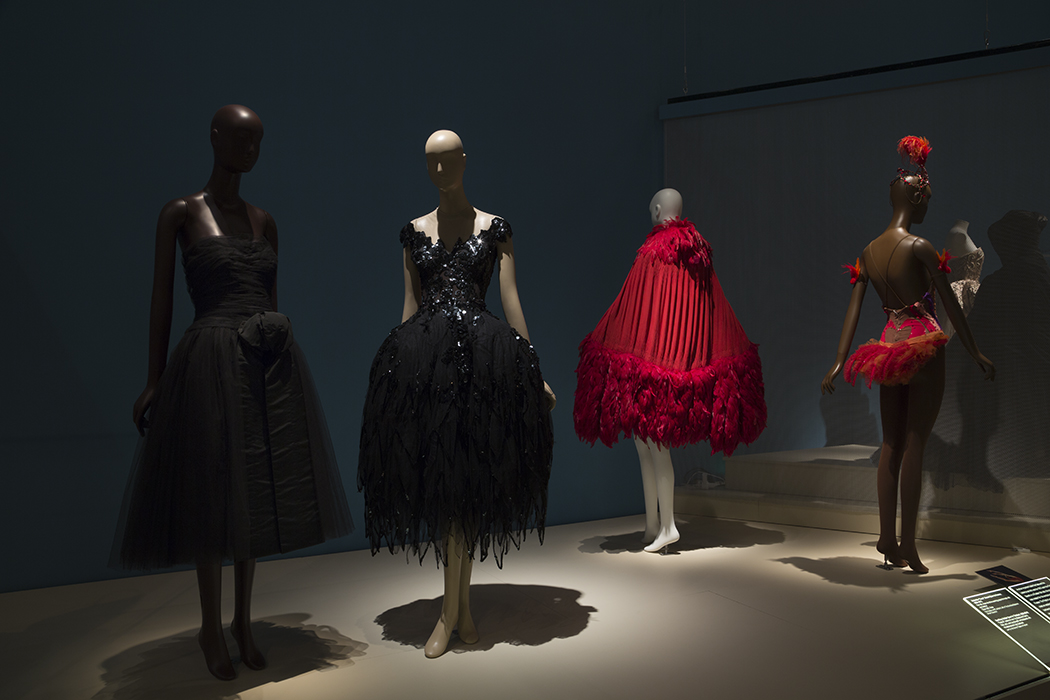 Ballerinas who dance the vibrant and magical role of the Firebird don a brilliantly feathered costume. The exhibition features a contemporary version created for the Dance Theatre of Harlem that retains the color and spirt of the 1910 original. Coco Chanel’s 1920s red feathered cape echoes the Firebird costume, illustrating fashion’s growing influence on ballet during the interwar years.