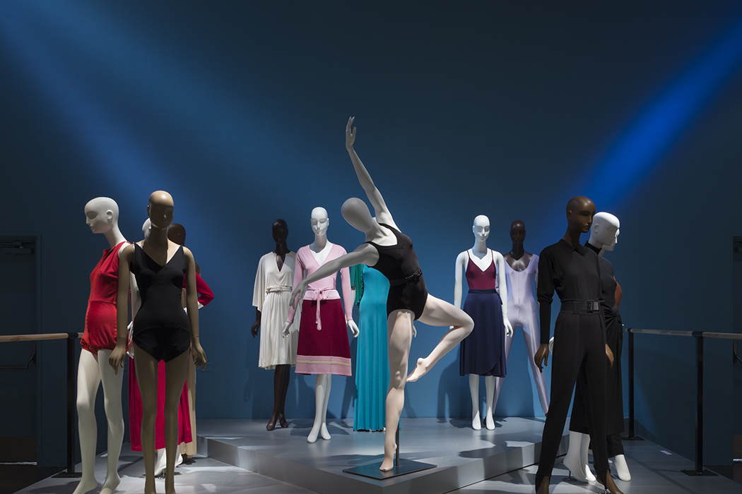 Since the 1940s, choreographer George Balanchine’s modern ballets were often performed in just leotards and tights. These costumes inspired the creation of swimwear, leggings, and wrap dresses by designers such as Claire McCardell whose sportswear separates took their cues from both ballet and modern dance. Americans continued to produce leotards and leggings for in the coming decades.