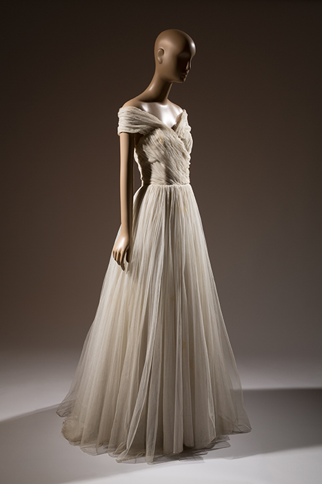Pierre Balmain, off-white tulle evening dress, circa 1955. The Museum at FIT, 76.42.24. Gift of Mrs. John Thomas Trippe. ©The Museum at FIT