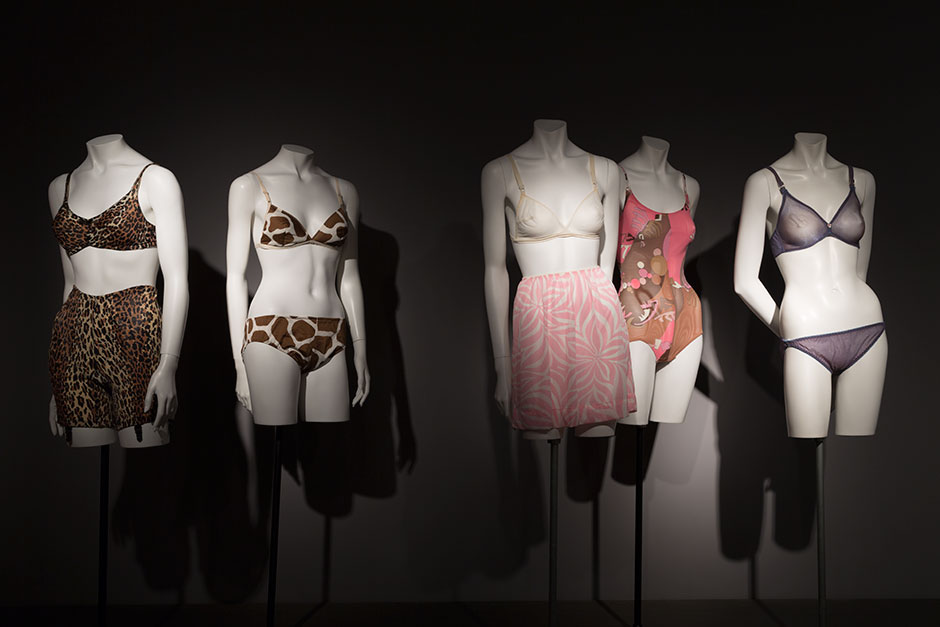 The exhibition concludes with an array of contemporary lingerie, from the stylish comfort of Hanky Panky to the overt eroticism of Agent Provocateur.