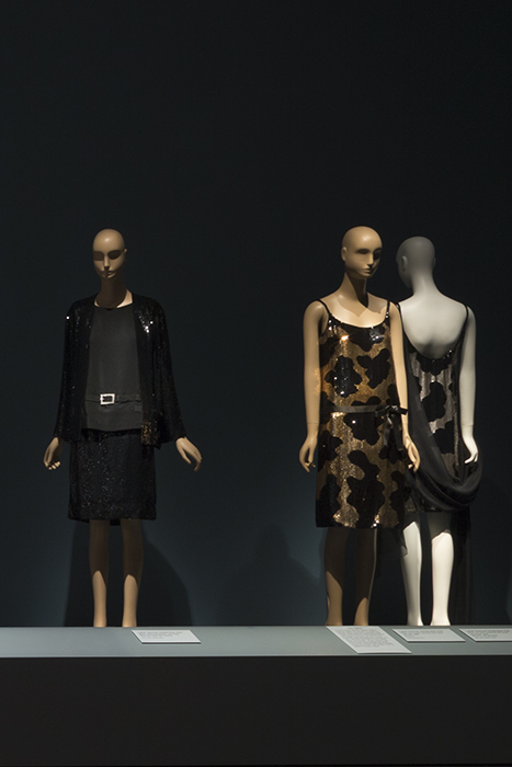 Black and gold wool crepe and sequin chemise dress, 1966. Photograph of Kenneth Pool Collection © Marc Fowler.