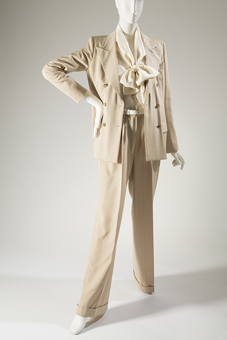 Power Mode: The Force of Fashion explores the role fashion plays in establishing, reinforcing, and challenging power dynamics within society. It includes both men’s and women’s clothing from the 18th century to the present, organized thematically to concentrate on five categories: military, suits, status, rebellion, and sex. Each section investigates how certain designs and garments have come to be culturally associated with power, as well as how their meanings have evolved over time. The exhibition also examines how fashion designers have interpreted these stylistic archetypes — both to convey and to subvert power.